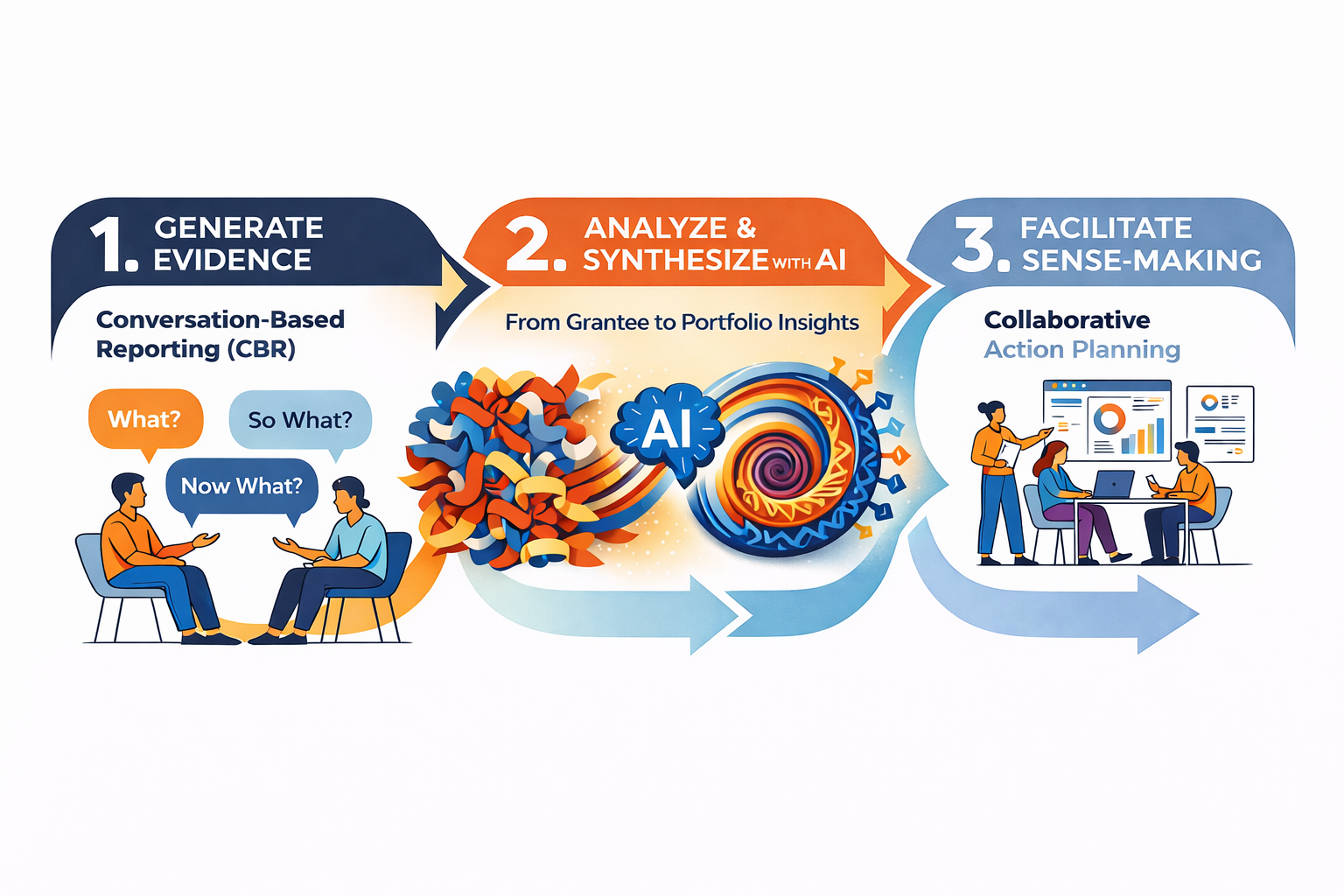 Why it works: This approach generates “robust, representative, and useful evidence” of relative contribution and wider system signals. It turns reporting into a mutually beneficial reflective practice, where grantees feel heard, and funders gain deep, contextualized insights.